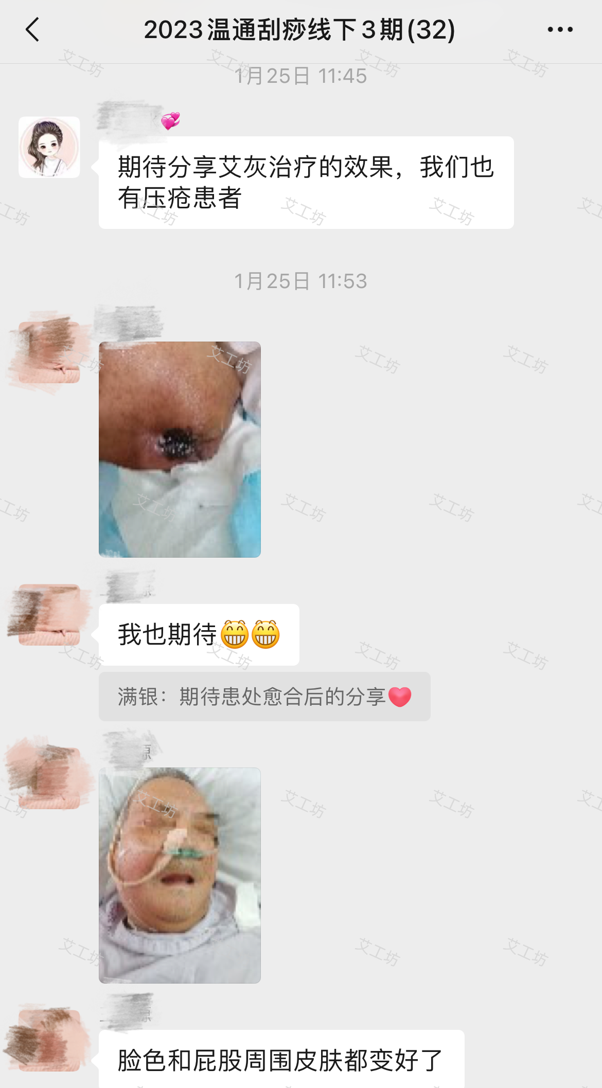 1月底和刚开始对比(大概11天左右),患者脸色红润,溃烂位置范围缩小并且开始结痂。